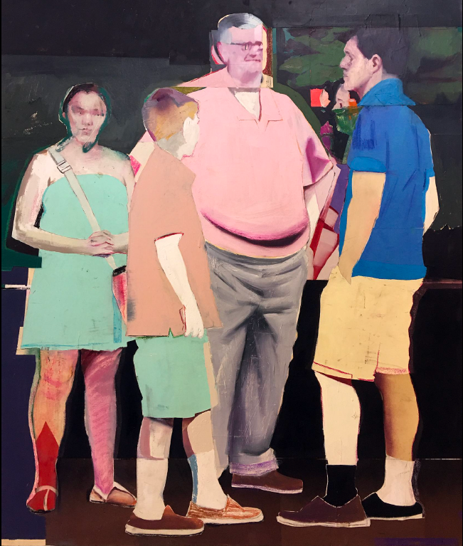 In All American, Brett Amory returns to his ongoing investigation of waiting, those suspended moments where individuals gather within shared yet unspoken societal structures. A small group stands together, perhaps a family, rendered in his signature blurred forms and pastel palette that soften identity while heightening atmosphere. The scene feels familiar yet slightly unsettled, as if time has slowed and we are left to consider why we pause, queue, and conform. The title operates both plainly and provocatively, prompting us to question what defines “all American” and whether it lies in the setting, the figures, or the quiet rituals that shape everyday life.