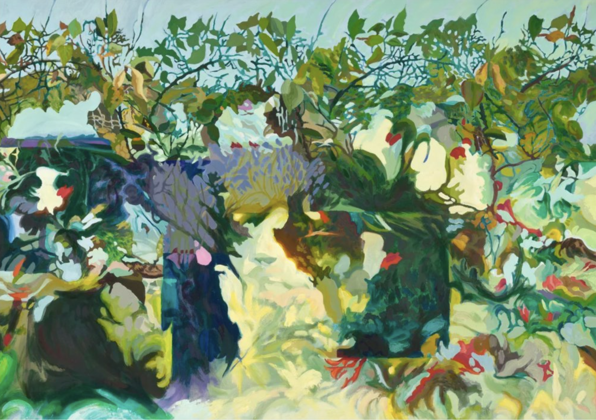 Mirabel’s art explores the impact of our changing environment, using symbols that reflect the challenges of our current era. Her paintings invite viewers to think about how the land and landscape shape the stories and ideas we share as a culture. She builds up layers of images and materials on the surface of her work, creating scenes that are full of contradictions where shapes and gestures can mean different things at once.