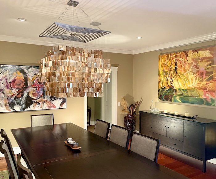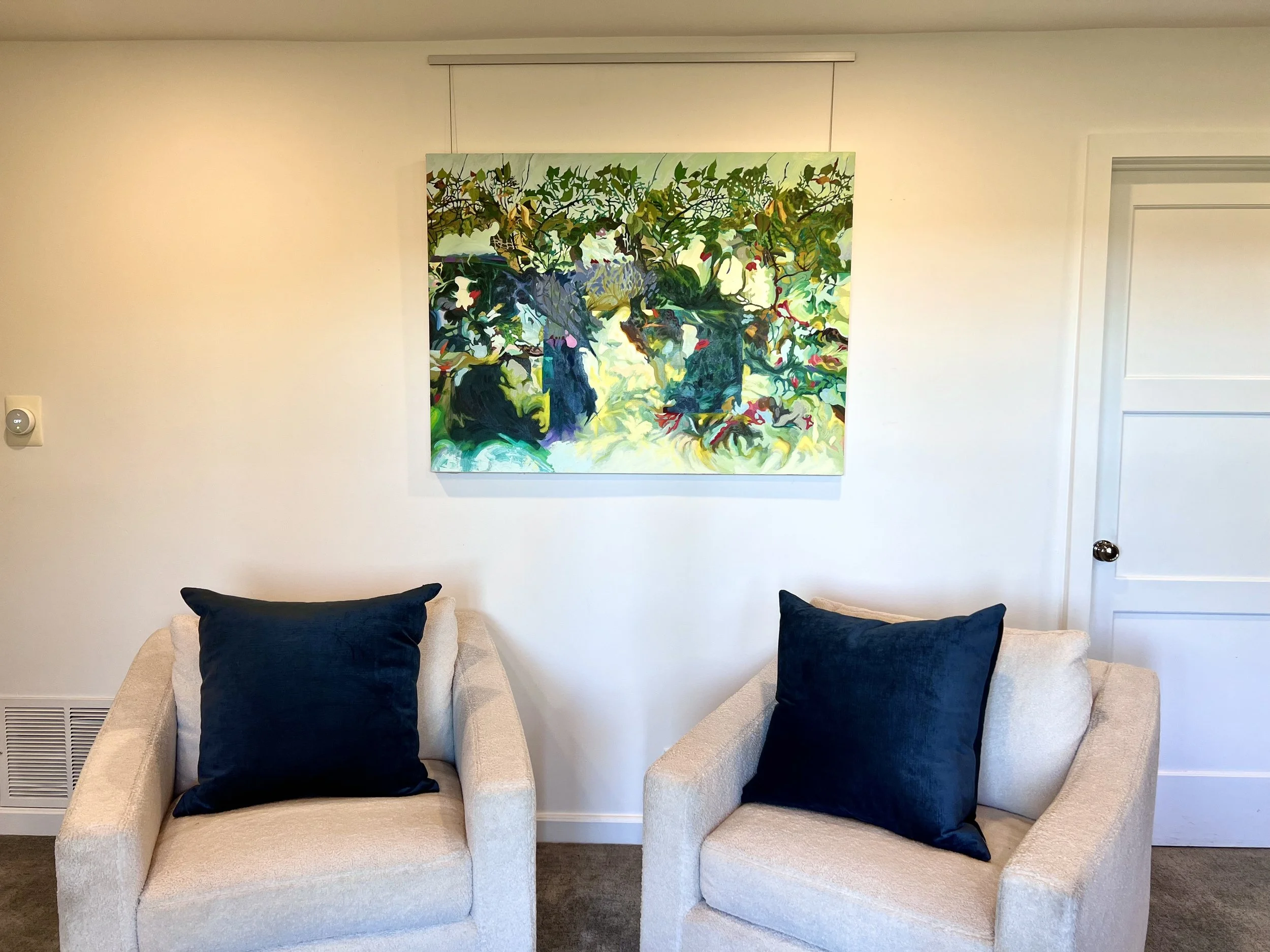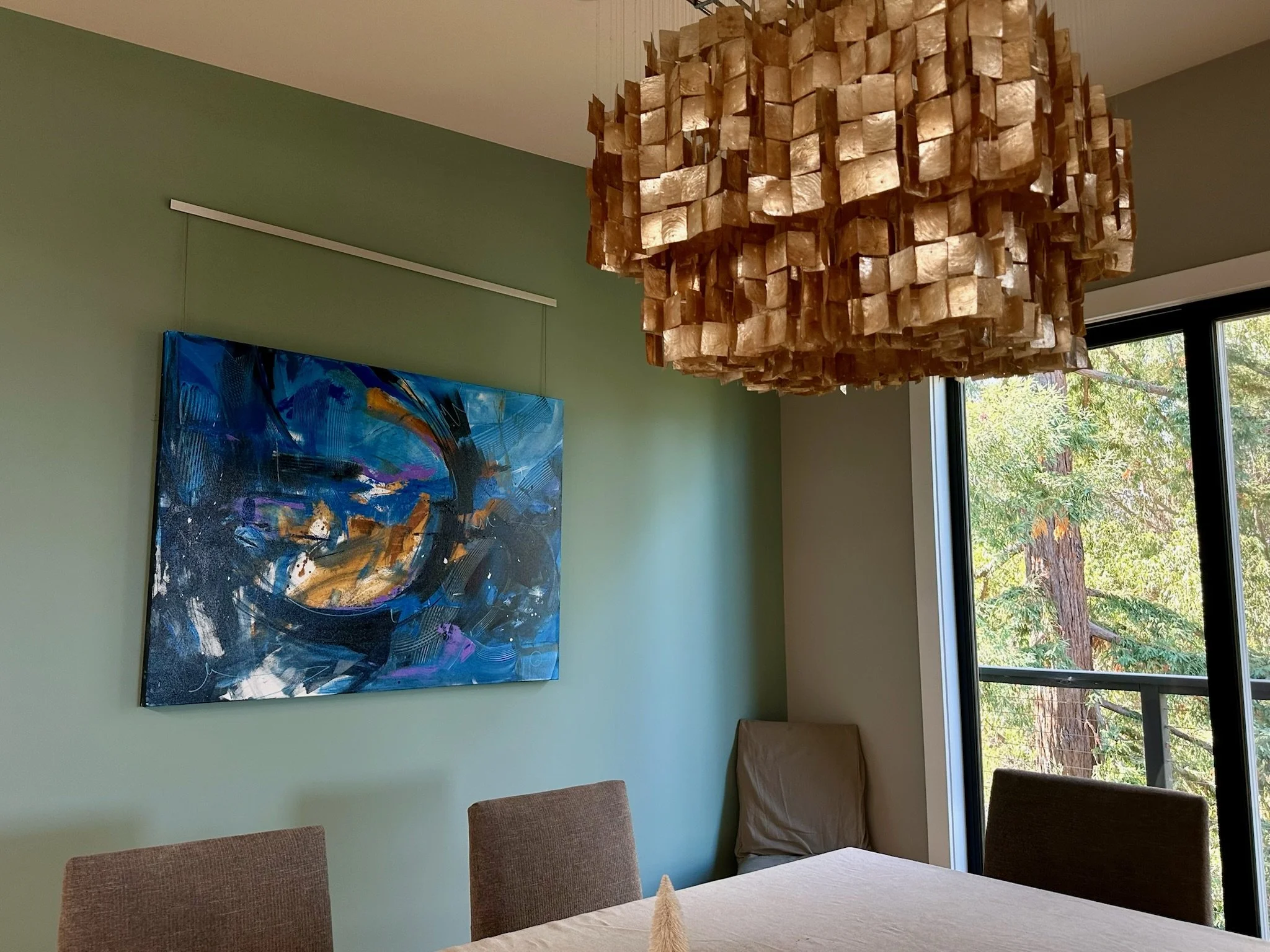 Your artwork is happiest away from direct sunlight, heaters, and steamy bathrooms. Think of it like a houseplant that prefers a calm, stable environment! If it’s in front of a window (like above), we recommend a wall that doesn’t get sun all day.
