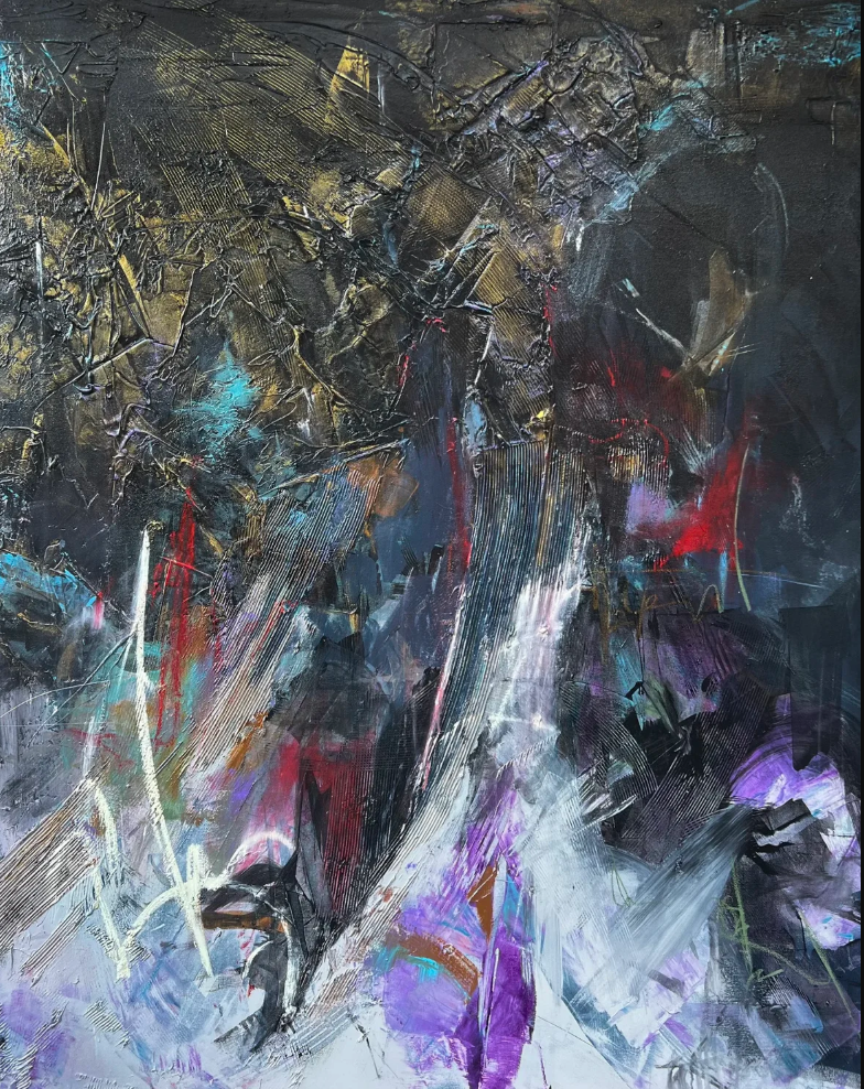 My process is layered, much like life itself. I begin with an emotional response or concept, then build layers of meaning through color, texture, and form. each layer represents a different aspect of the human experience creating a complex narrative that viewers can interpret through their own lens.