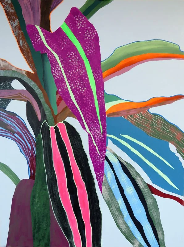 Jennifer Lugris's "The New Mother" (2024) is a 40 x 30 inch acrylic canvas from her "In Full Bloom" series, which looks at early parenthood - the exhaustion, the love, the chaos. Lugris is a Sacramento-based artist of Uruguayan, Korean and Spanish descent who paints scenes from her own daily life, using plants and domestic objects as recurring symbols. Her multi-panel format reflects her layered cultural identity and her belief that her story cannot fit neatly onto a single canvas. Lugris holds an MFA from UC Santa Barbara. Her work is in permanent collections at the Hawaii State Foundation on Culture and the Arts, Facebook and UC Davis Health.